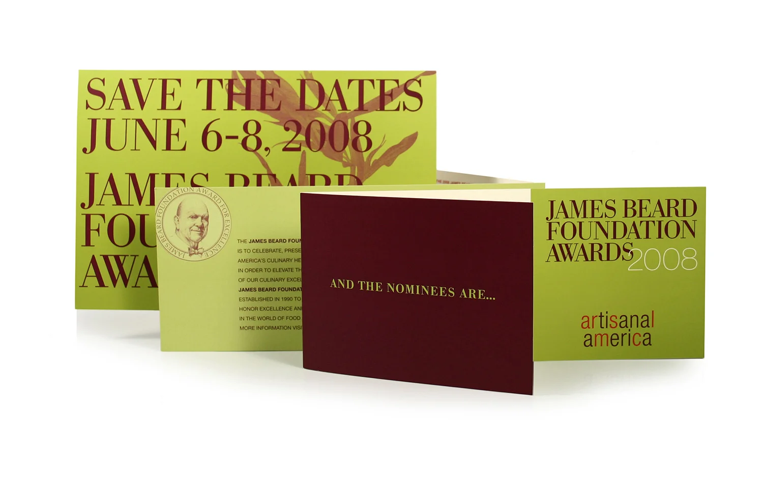 For three consecutive years, Florio Design conceived, designed, and implemented the event branding for The James Beard Foundation Awards. This event, often referred to as the Oscars of the food world, attracts a national group of top chefs vying for the coveted JBF award medals. Florio Design created the graphic directions and implemented each unique application for the award evening. From invitations and websites, to event signage, menus, and collateral, ads and animated billboards, the themes changed each year and with a modest budget, challenged our creativity. Proudly, we were able create a memorable brand for this prestigious award show.