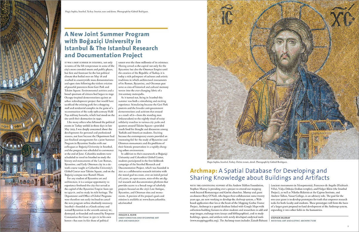 This annual publication for the Department of Art History and Archaeology at Columbia University, designed by Florio Design for 10 years, generates generous alumni donations and funding by showcasing the department's projects, academic travels, exhibitions, faculty publications and awards, as well as the alumni's current projects.