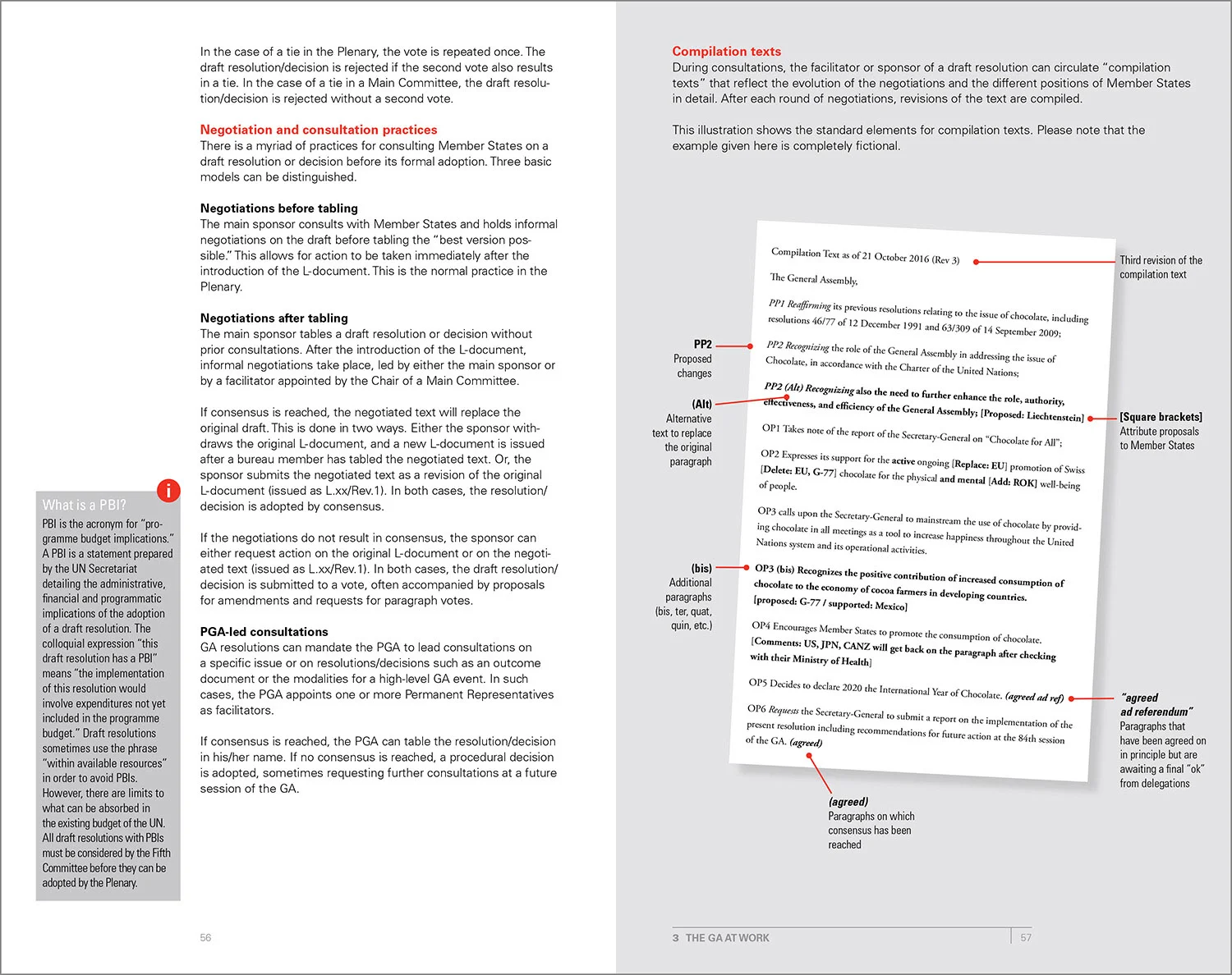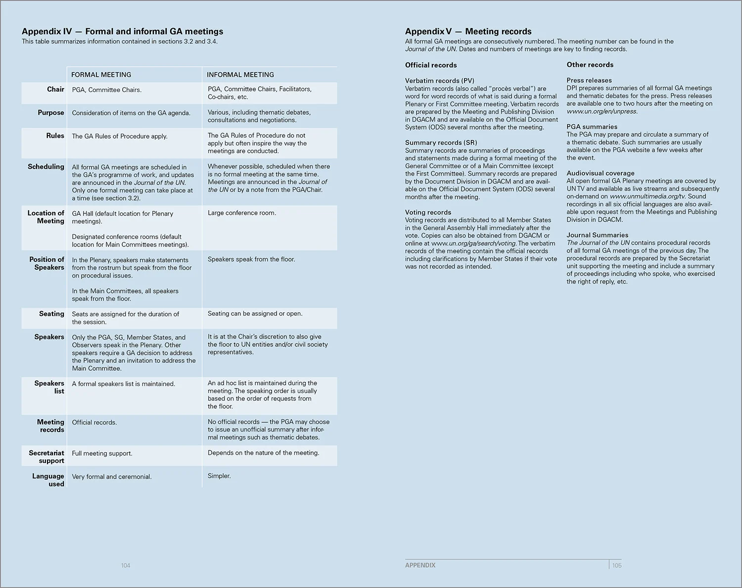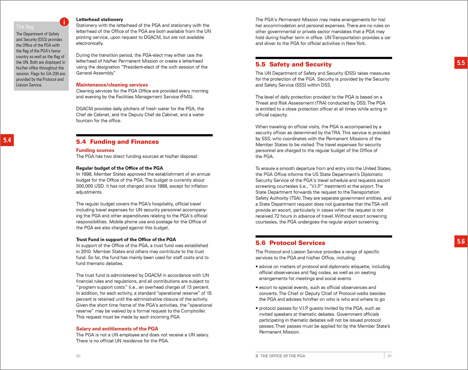 Florio Design developed the first PGA Handbook, A Practical Guide to the United Nations General Assembly, sponsored by the Swiss Mission to the UN. Conceived as a resource and learning document detailing the organization’s vast structure, governance, processes and resources, it is targeted to the member states and the president of the UN assembly. Befitting a Swiss-inspired publication, the booklet was both functional in its ease of use and grid and colored in contemporary Swiss style. Working together with the mission, Florio Design created a "handle-able" book—easy to read and access—and included informational tables, a tabbed numerical system for fast cross-referencing, and sidebars throughout alerting reader to interesting anecdotes and quick references that clarified complex topics. This booklet was the first UN reference guide to aggregate such a vast range of institutional information. Our greatest honor was being invited to that session’s opening assembly to witness the distribution of this guide.